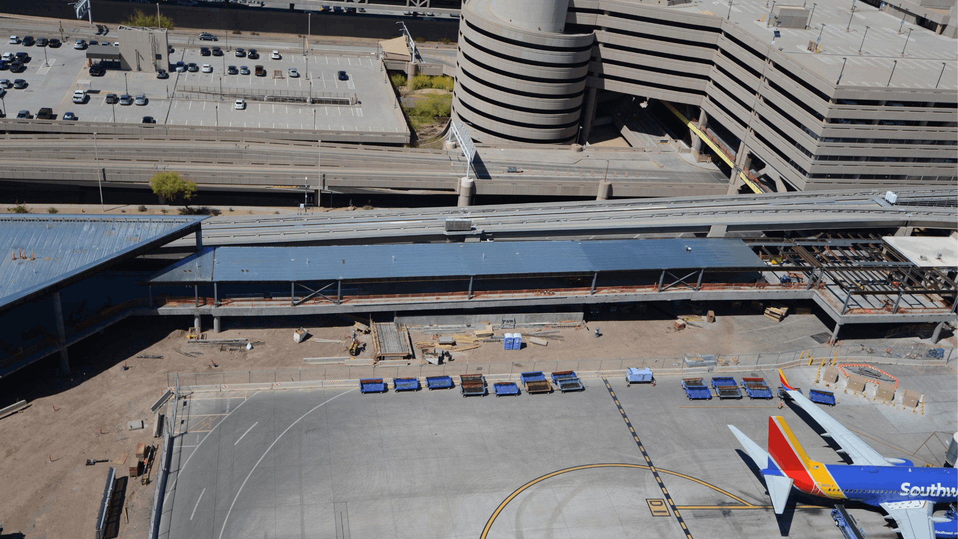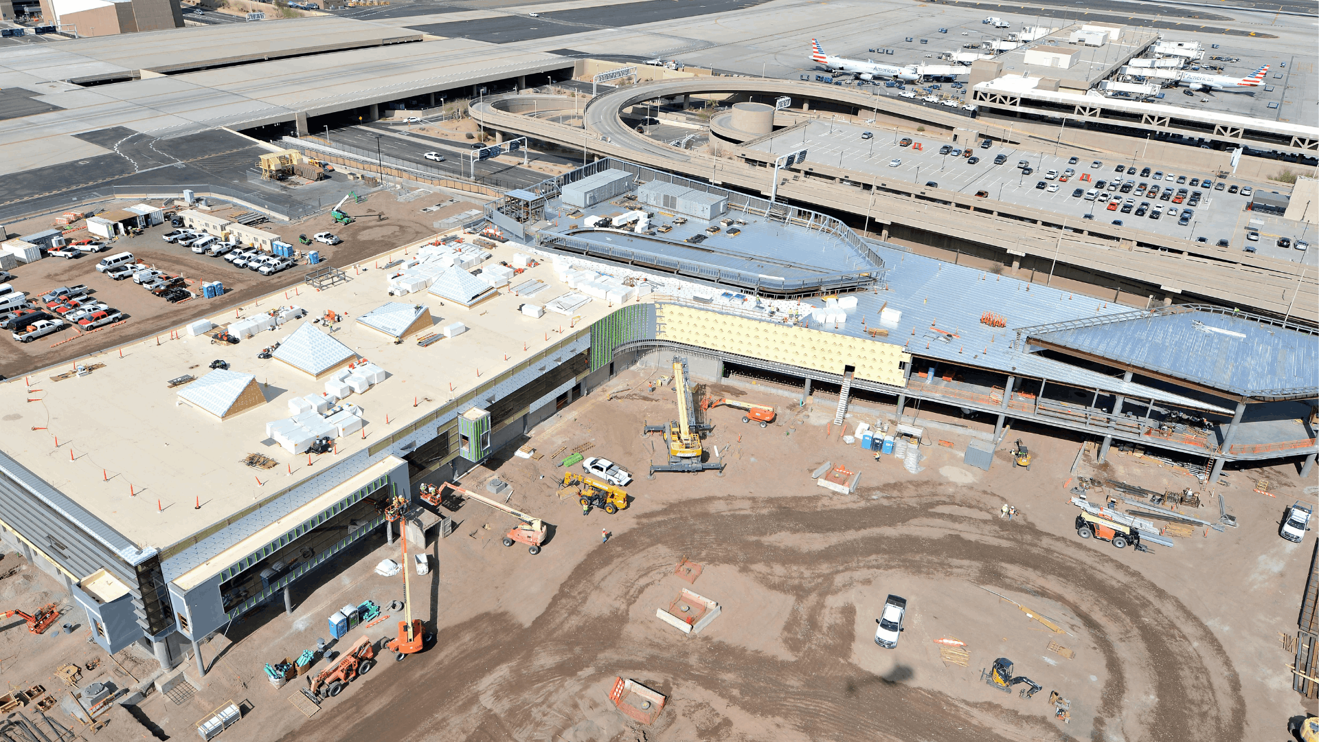 The Sky Harbor Terminal 4 project is a 130,000 square feet additional concourse and bridge access which adds 8 gates. An access bridge tied into the west side of existing terminal and traveled from the north side of the terminal to the south side of terminal. The bridge structure was at level 4 of the existing terminal and was erected over 8 lanes of Sky Harbor Blvd and over the operating Sky Train.