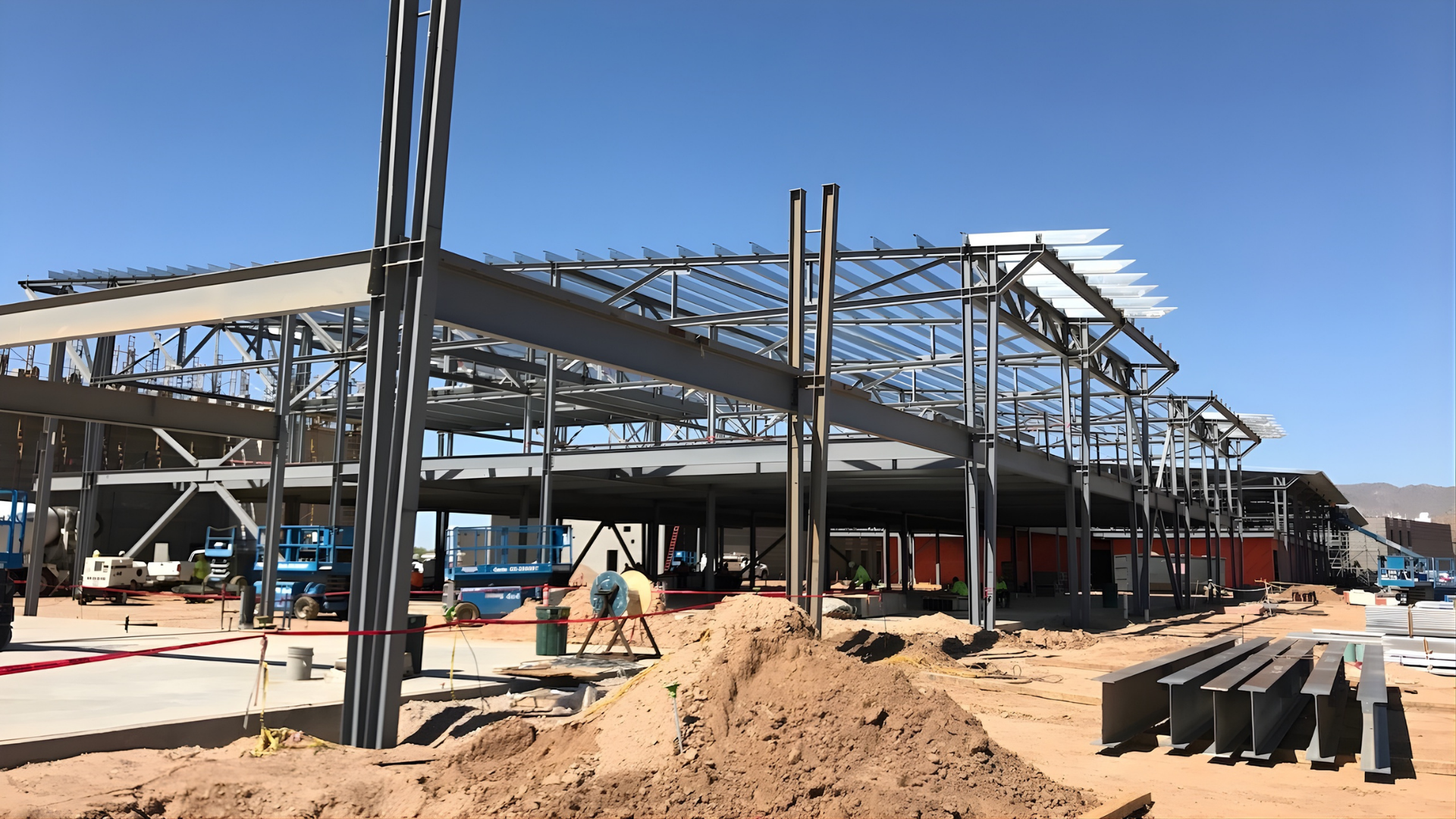 The Agua Fria High School project included 237,000 square feet with 9 buildings on a new greenfield site. It was a 2 story structural steel frame buildings all connected with bridges and canopy features.