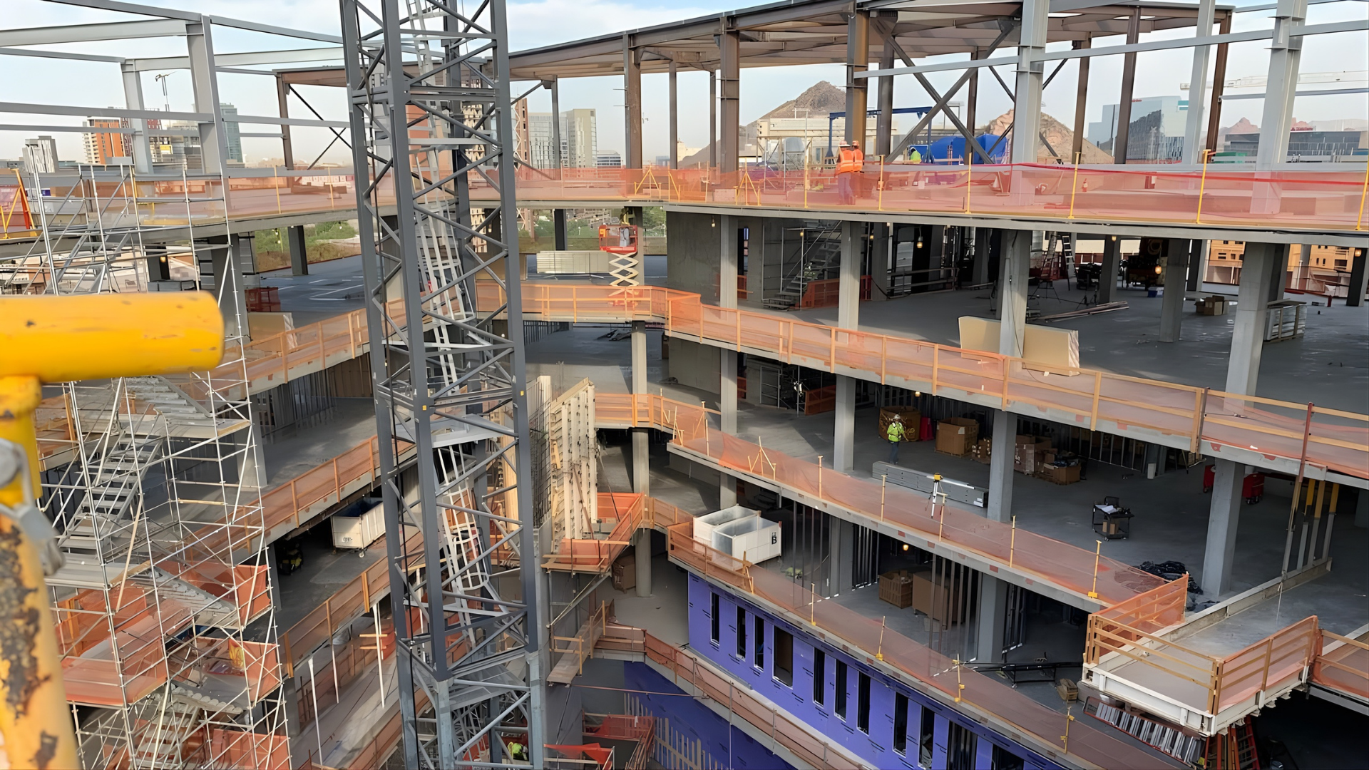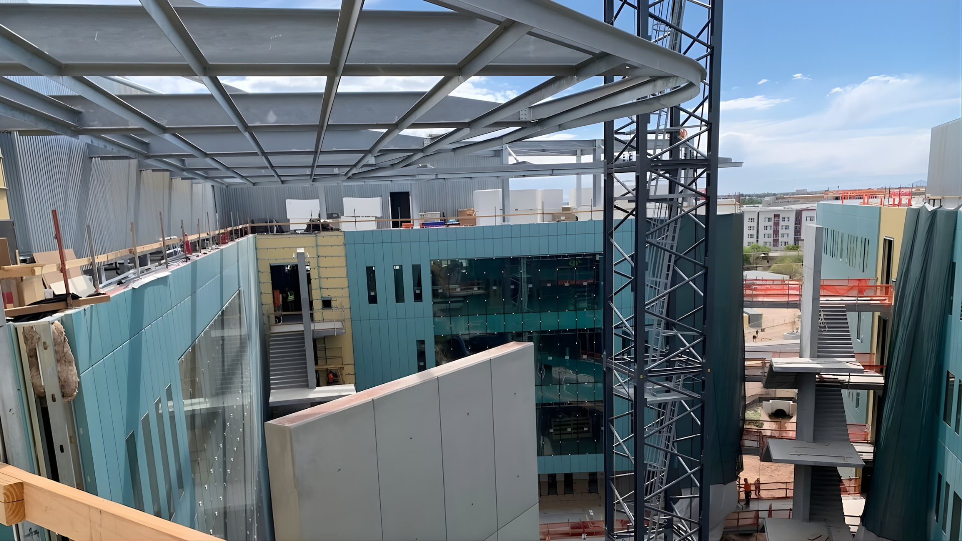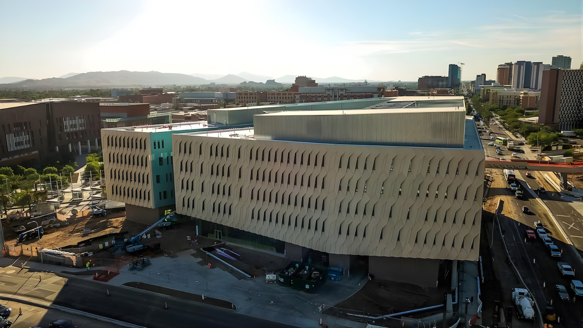 It was a triangular site with no laydown area bound by two major streets on the north and east side with the valley metro light rail and SRP canal both running at an angle on the south side. The delivery and construction sequence coordination was critical.