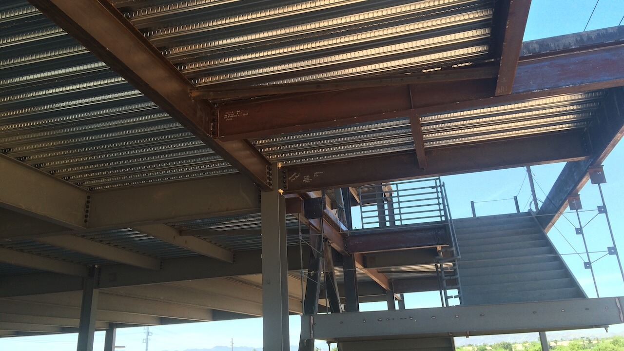 This was an extremely fast-tracked project. We had 8 weeks to work with the architect and EOR to finalize the design so we could order steel and begin fabrication. We started erection 4 weeks later. By working with the design team throughout the design process, we were able to share 3D models and develop our shop drawings while we were still finishing the design. From the first conceptual design in early November, we were able to start erection 12 weeks later in early February and turned back money to the owner.